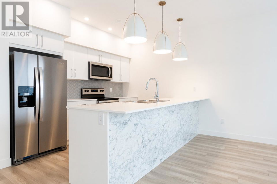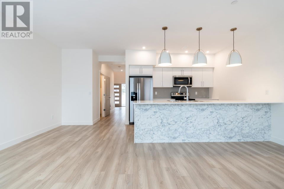 Kermode Landing is in the family-oriented Campbell Creek neighbourhood located close to a park, trails and only 15 minutes to downtown Kamloops. In this two story inside unit townhome, you will find a spacious open concept living with 9 ft ceilings that open up to custom kitchen with cabinets by Living Kitchens, quartz countertop and an eating bar. Remainder of the main floor includes a living room with laminate flooring, and patio access off the dining area, 2 pc bath, and a flex space that could be used for desk space or whatever suits your needs! Upstairs you will find a spacious master bedroom, a 4 pc en-suite and a walk-in closet! Furthermore, you will find 2 more bedrooms, 4 pc main bath and laundry. Other features include, custom window coverings, carpeted bedrooms, high efficiency hot water tank, roughed-in wireless alarm & central vac. This home is rated Step 3 with zero carbon emissions. Brand new development fully landscaped and maintained. Exterior is beautifully finished with vinyl & Hardie plank siding. (id:17834)