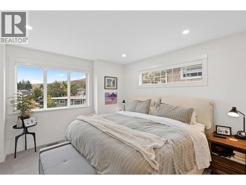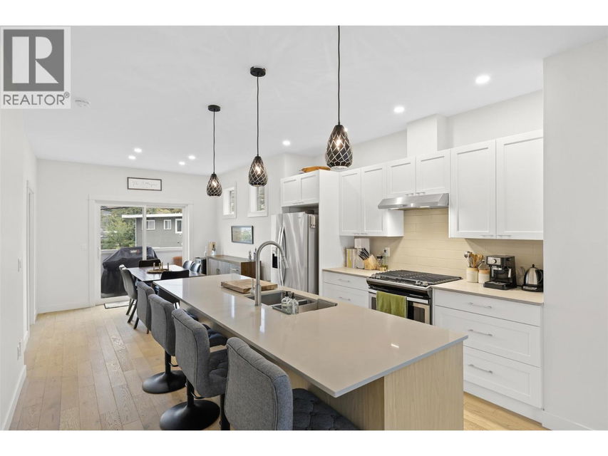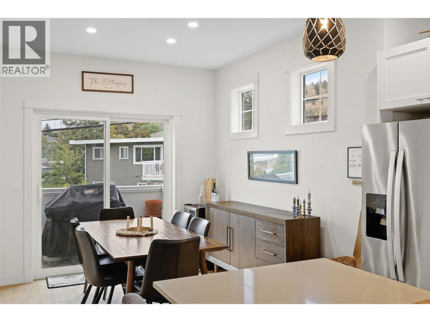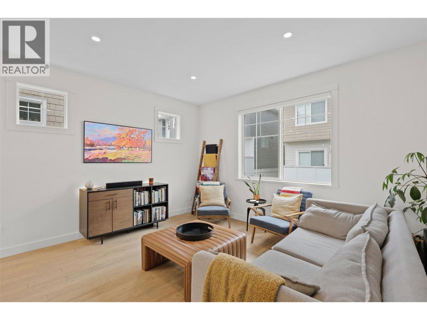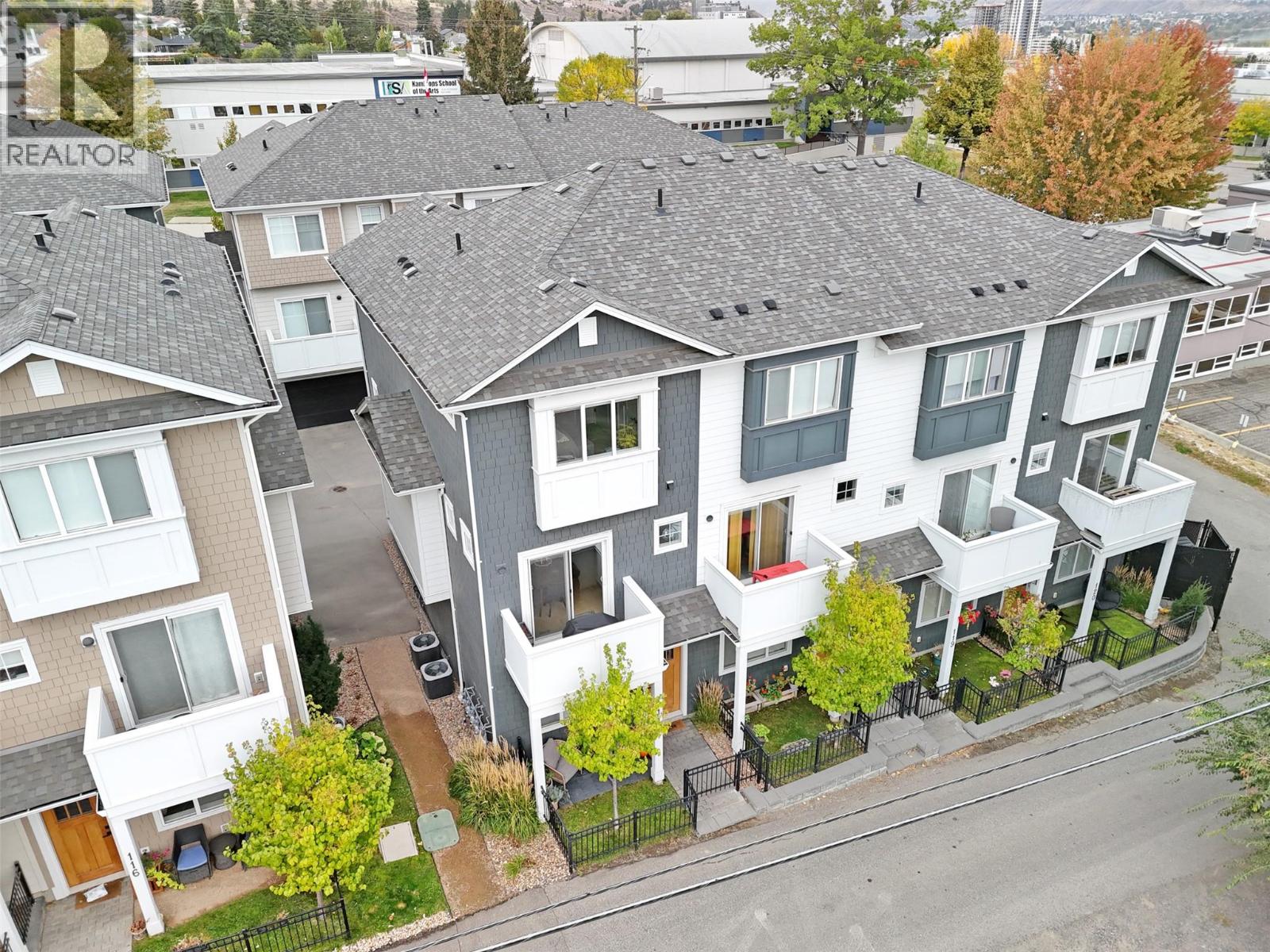 Welcome to The Walk — a modern, low-maintenance community just minutes from downtown Kamloops. This bright end unit stands out with extra windows and natural light that fills every corner. With 2 bedrooms, a den, and 3 bathrooms, this townhouse blends convenience, style, and function in all the right ways. The ground level offers a welcoming entry, a versatile den (perfect for your home office or to tackle your favourite home workout), and a spacious single garage. Upstairs, the open-concept main floor is made for entertaining — the sleek kitchen features quartz countertops, a huge island, and modern cabinetry that flows seamlessly into the living and dining areas. Step out onto your cozy deck — just the right size for your BBQ, a few herbs, or a comfy chair to unwind after work. Upstairs, you’ll find two bedrooms, a full bath, and laundry. The primary suite includes a large closet with custom built-in shelving and ensuite with a full tile shower. Bonus features include air conditioning, the remainder of the home warranty, and a second parking stall just steps away. Enjoy easy access to Peterson Creek Park, the Sagebrush Theatre, schools, and parks — everything you love about Kamloops living is right outside your door. Move in, explore, and start walking your way into a great new lifestyle at The Walk. (id:17834)